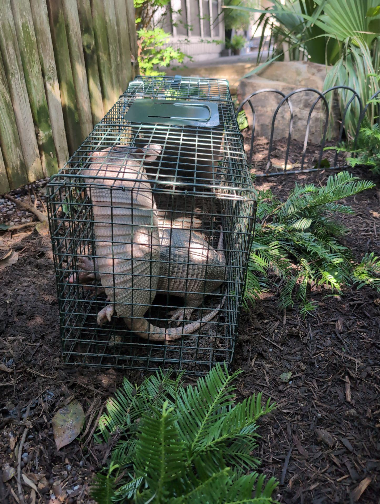 The armadillo was caught and removed from our property! What relief! Thomas knew what he was doing and in time, the creature was caught. We have been free from holes in the flower bed and digging in the yard. We also got a close up look at a life armadillo! See more See less